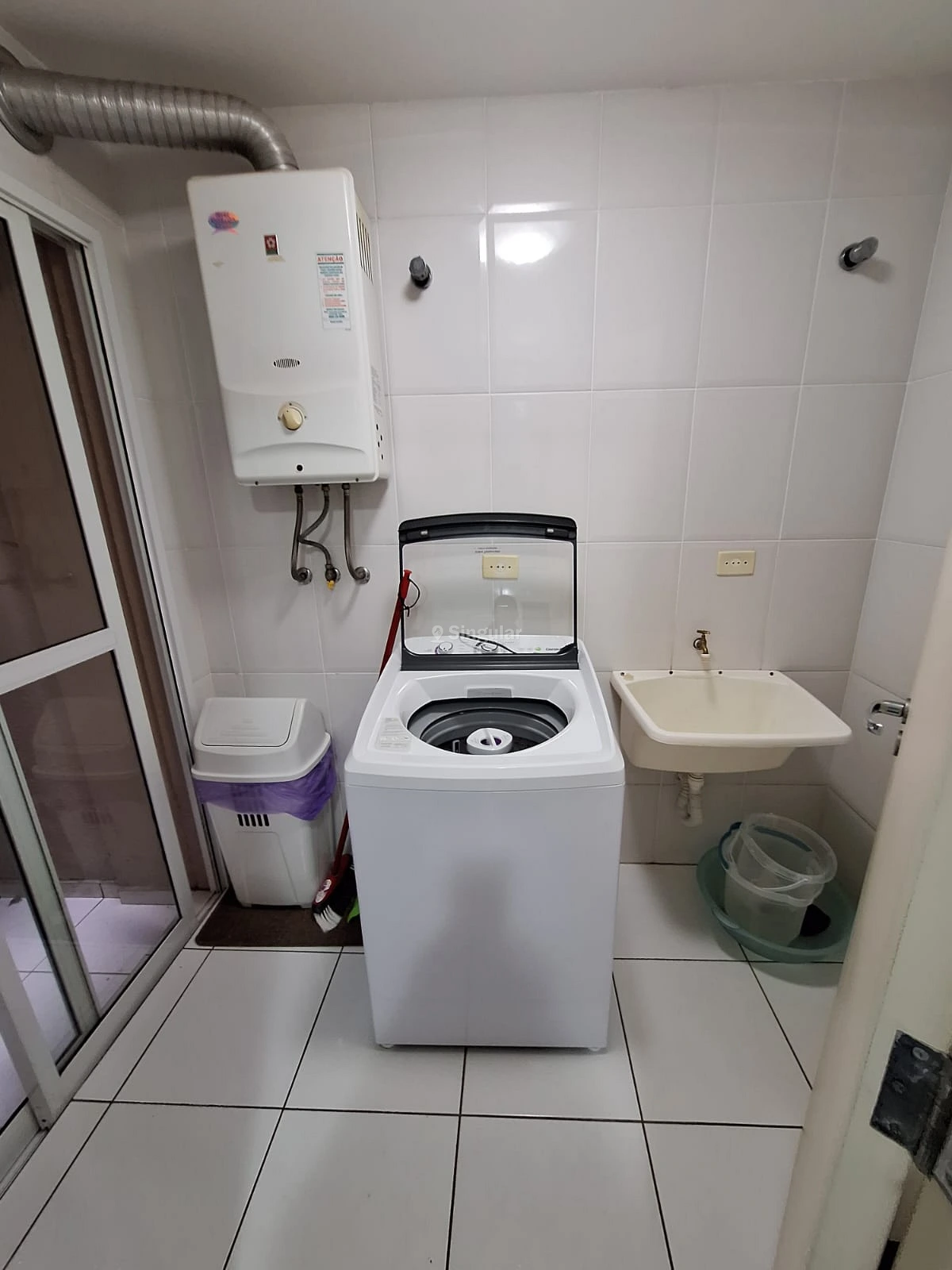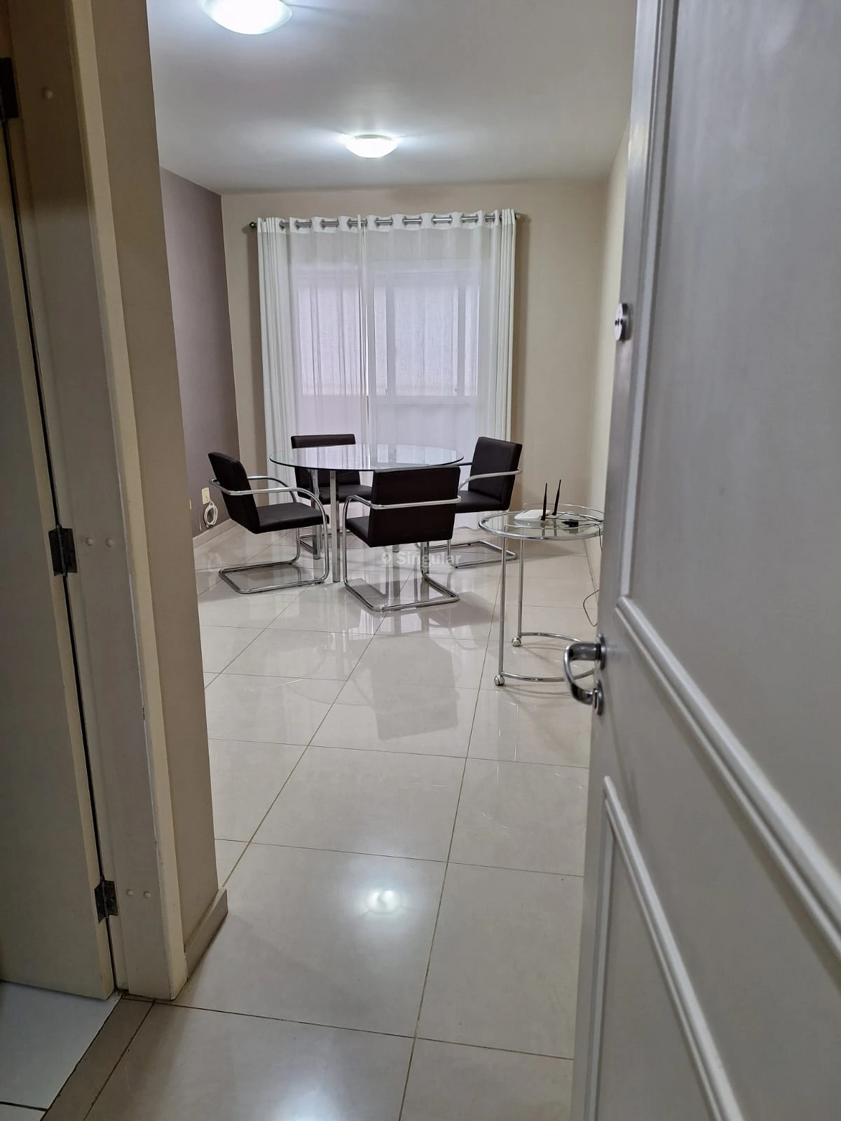 Apartamento 1º andar com elevador, Internet no condomínio, duas vagas de garagem cobertas e grandes e um pequeno quintal.